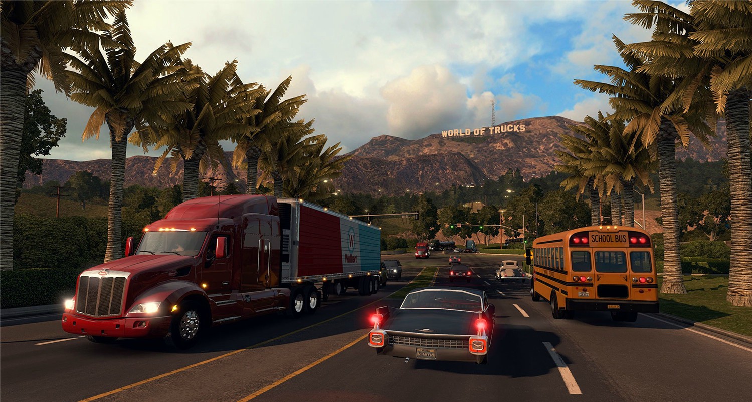 《美国卡车模拟》是由SCSSoftware制作发行的一款模拟运输游戏。游戏中玩家需要驾驶美式卡车运输货物,过程中要保证遵守交通规则,保持匀速行驶,按时交货等等,还要靠自己的驾驶技术把货车精确的停到货仓。游戏中中使用的地图为谷歌地图,玩家可以驾驶各式各样的美式卡车,在高速公路上欣赏北美的标志性建筑。
